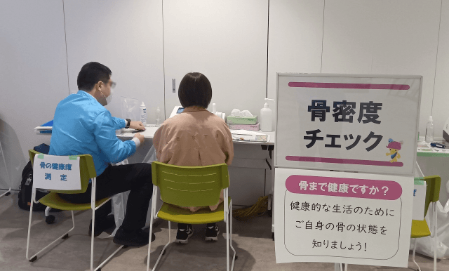 岐阜県内で開催されましたウォーキングイベント会場にて、参加者の方を対象として骨の健康度測定「骨ウェーブ」による測定を行わせて頂きました。